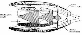 Turbo prop dan turbo fan dengan high by pass ratio menghasilkan thrust yang besar karena massa gas yang diperoleh sangat besar, sementara selisih kecepatan gas keluar dan gas masuk relative kecil.